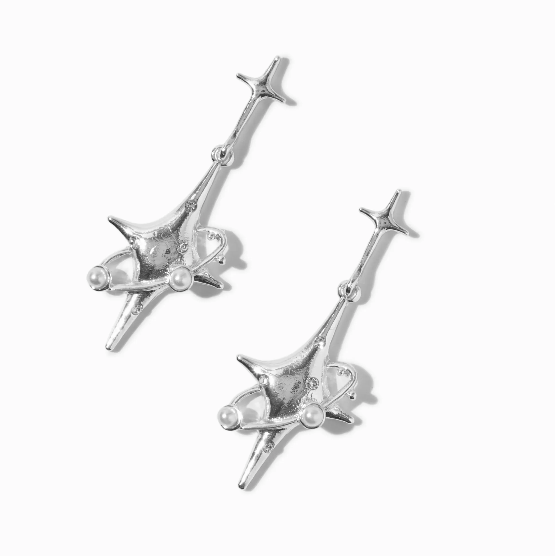Be the most you in these silver-tone drop earrings. The post-back earrings have stacked star design with a satellite ring detail.