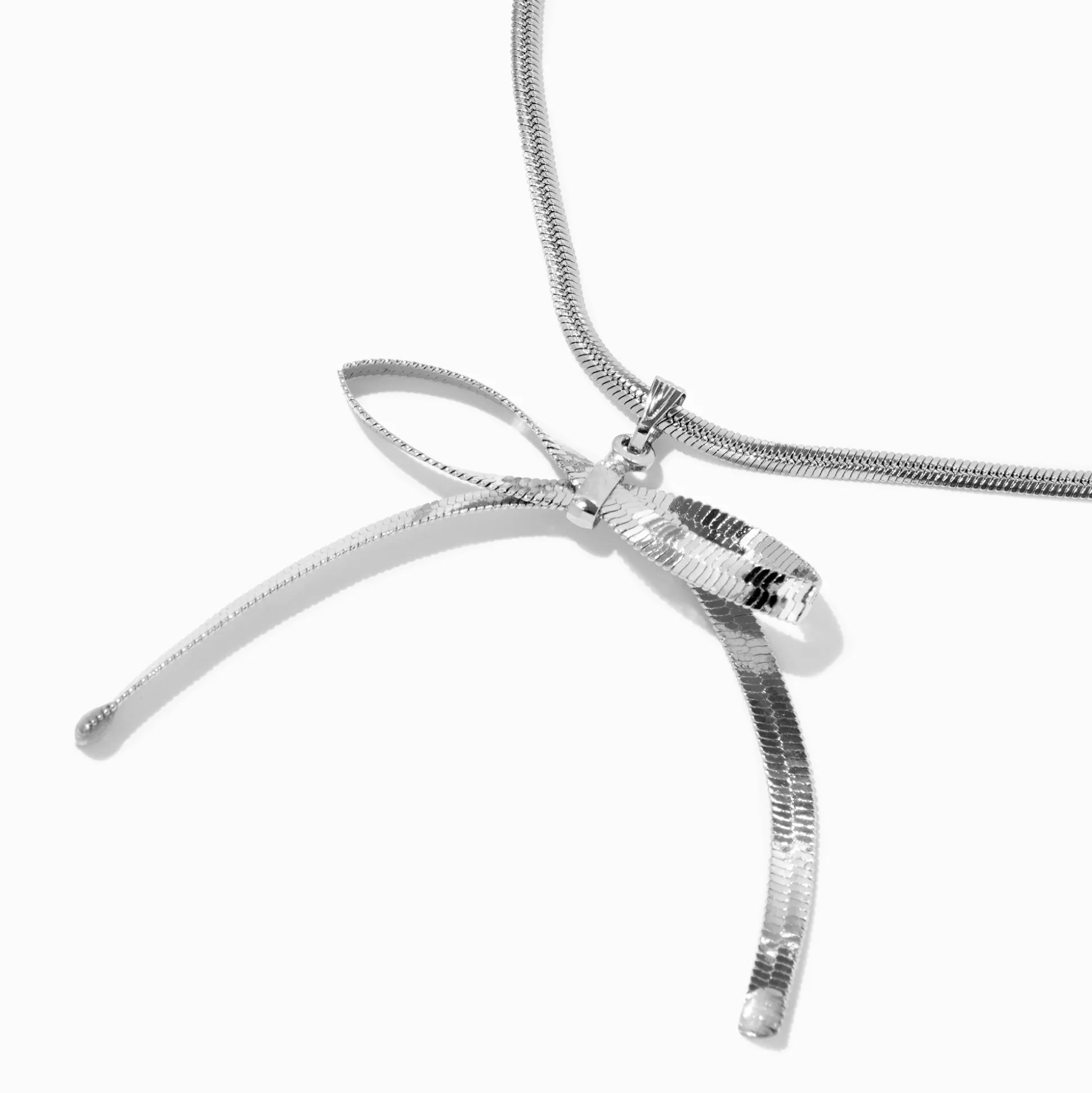 Finish your OOTD with a bow on this snake chain necklace. The silver-tone design has a smooth snake chain that’s tied in a delightful bow.