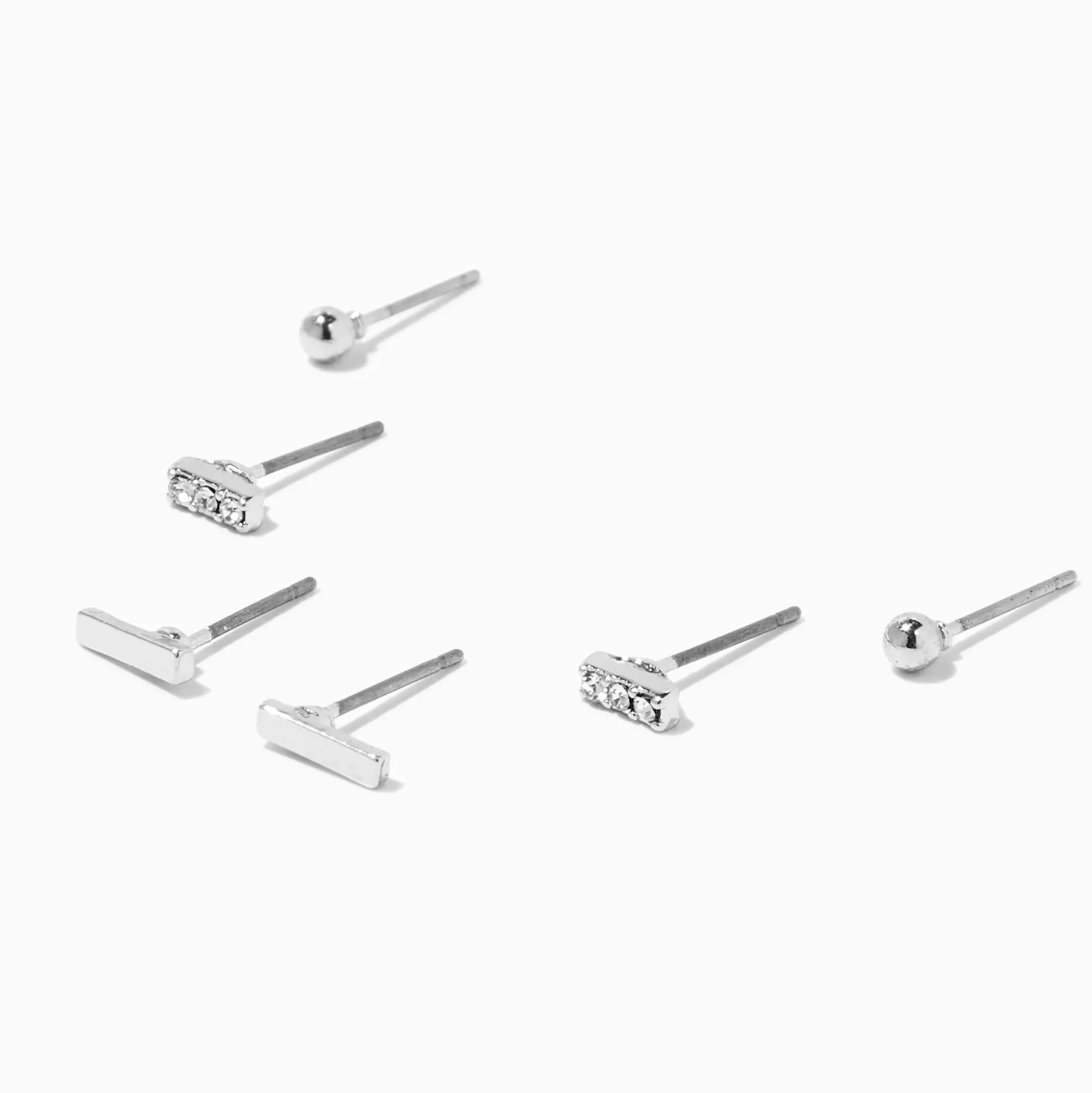 This three-pack of studs is perfect for stacking. The silver-tone set includes bars, faux crystal embellished bars, and balls.