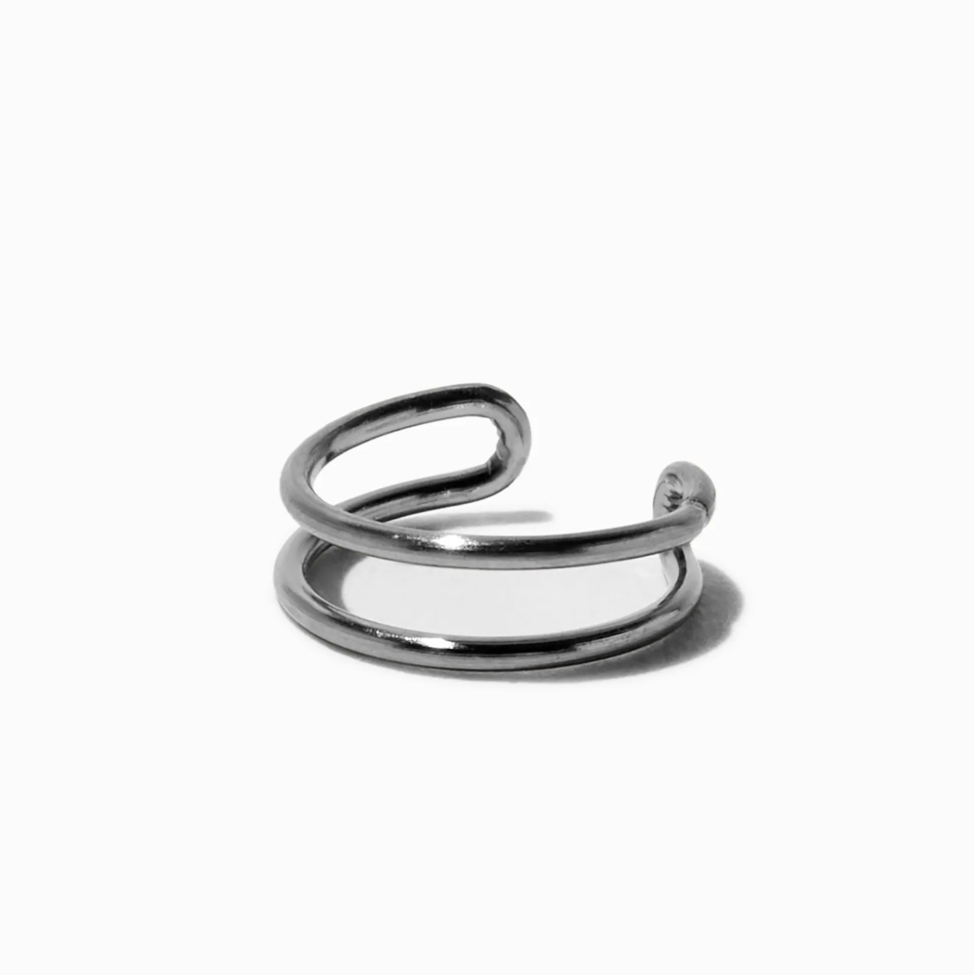 Keep it simple with a faux hoop nose ring! This silver-tone faux nose ring features a double hoop design with an adjustable cuff.
