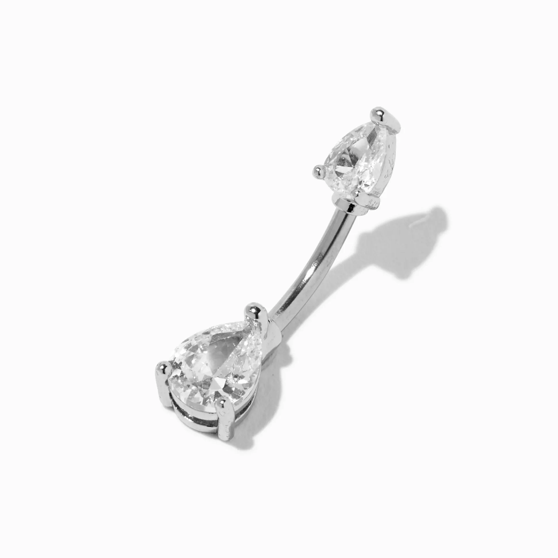 Teardrop it like it’s hot in this silver-tone belly bar. It has teardrop designs on the top and bottom, which are covered in faux crystals for added sparkle.