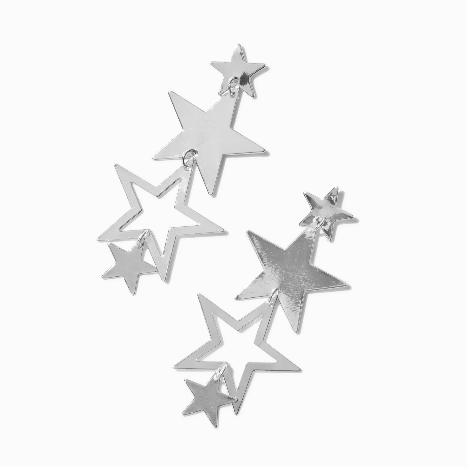 Stars are so classy, perfect for fancy occasions like parties and date nights! These silver-tone drop earrings feature a linear design of different sized stars.