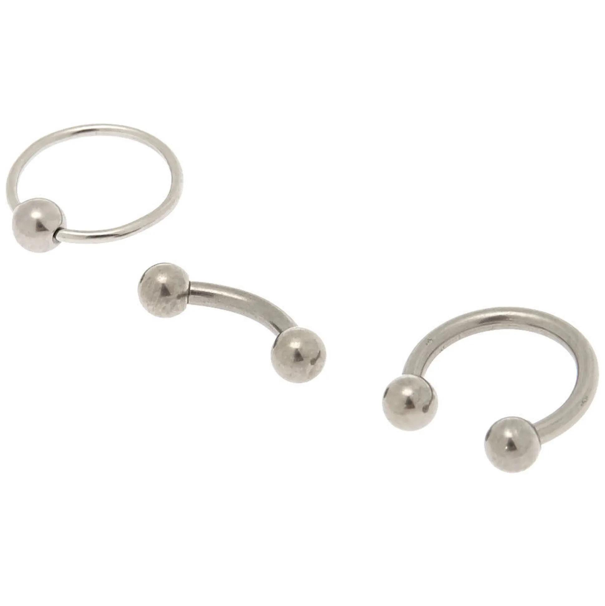 Mix up the shape of your cartilage earring with this assorted set. Each silver-tone earring features a titanium post and a beaded closure.