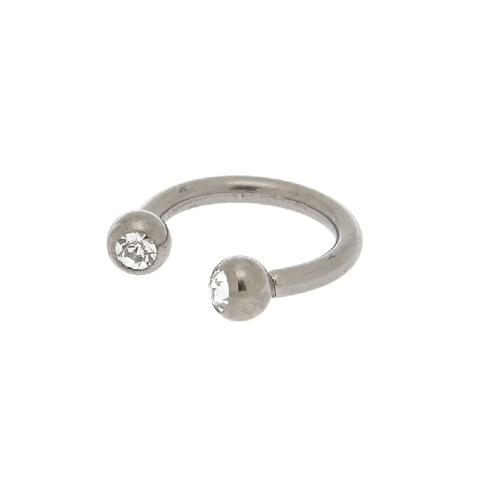 Take your cartilage piercing to the next level with titanium! This horseshoe shaped titanium cartilage hoop features clear faux crystal stone on each end.
