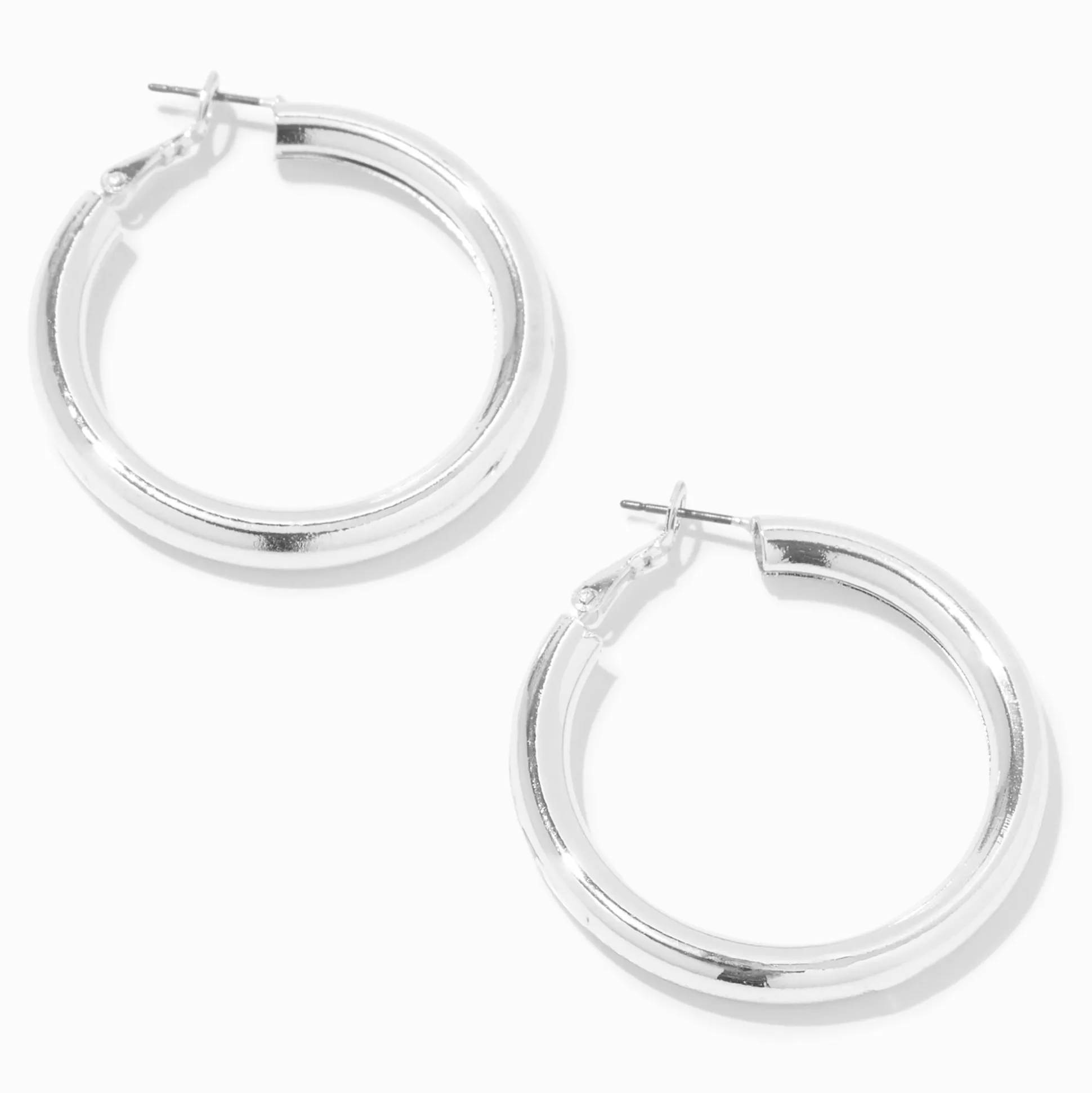 Look stylish all day everyday with this updated pair of hoop earrings! These shiny hoops have a tube design and a hinge-back closure.