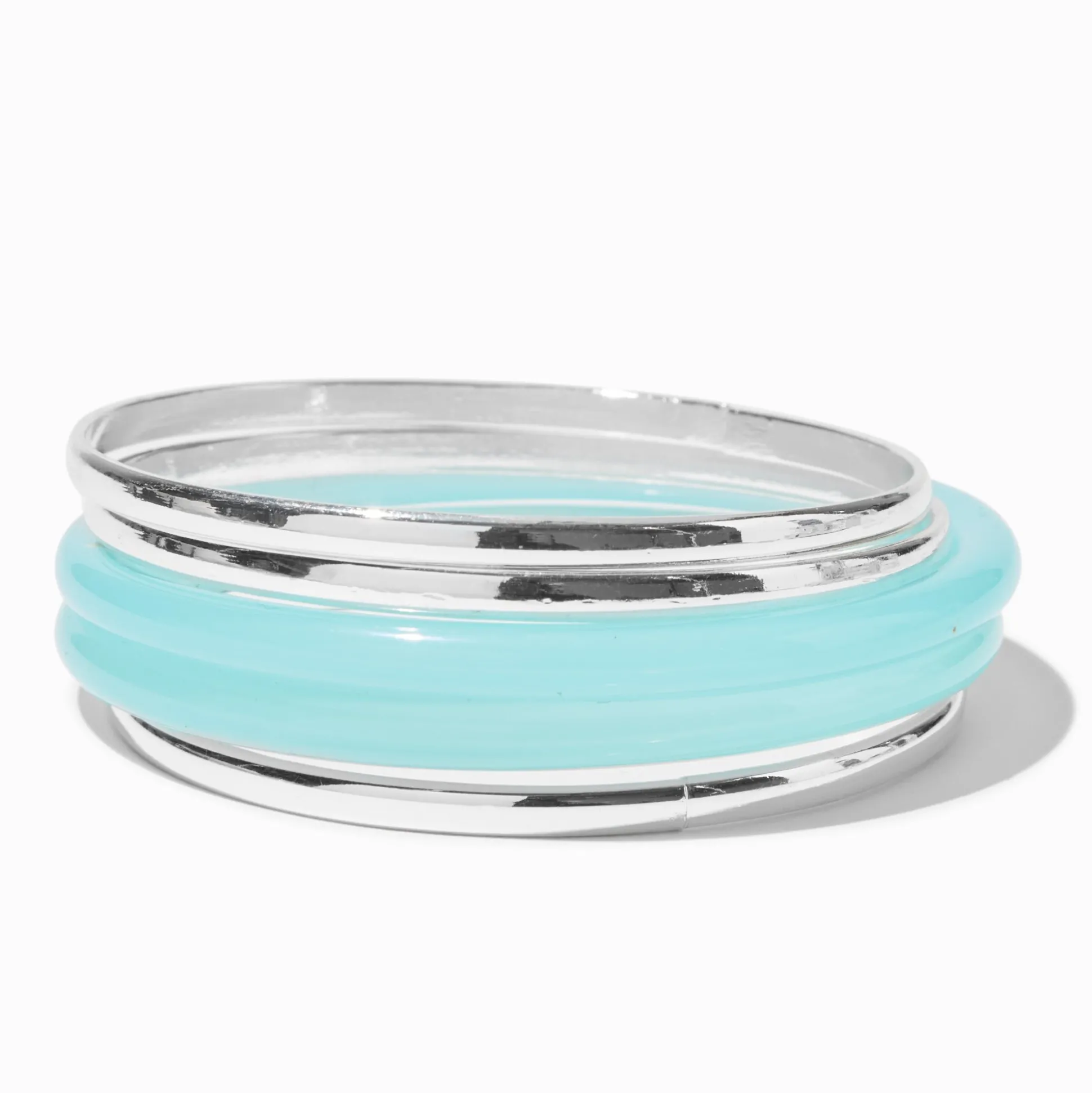 Add some subtle style to your wrist with these silver-tone and turquoise resin bangles. These bangles come in an 5-pack, so you can mix and match based on your look.