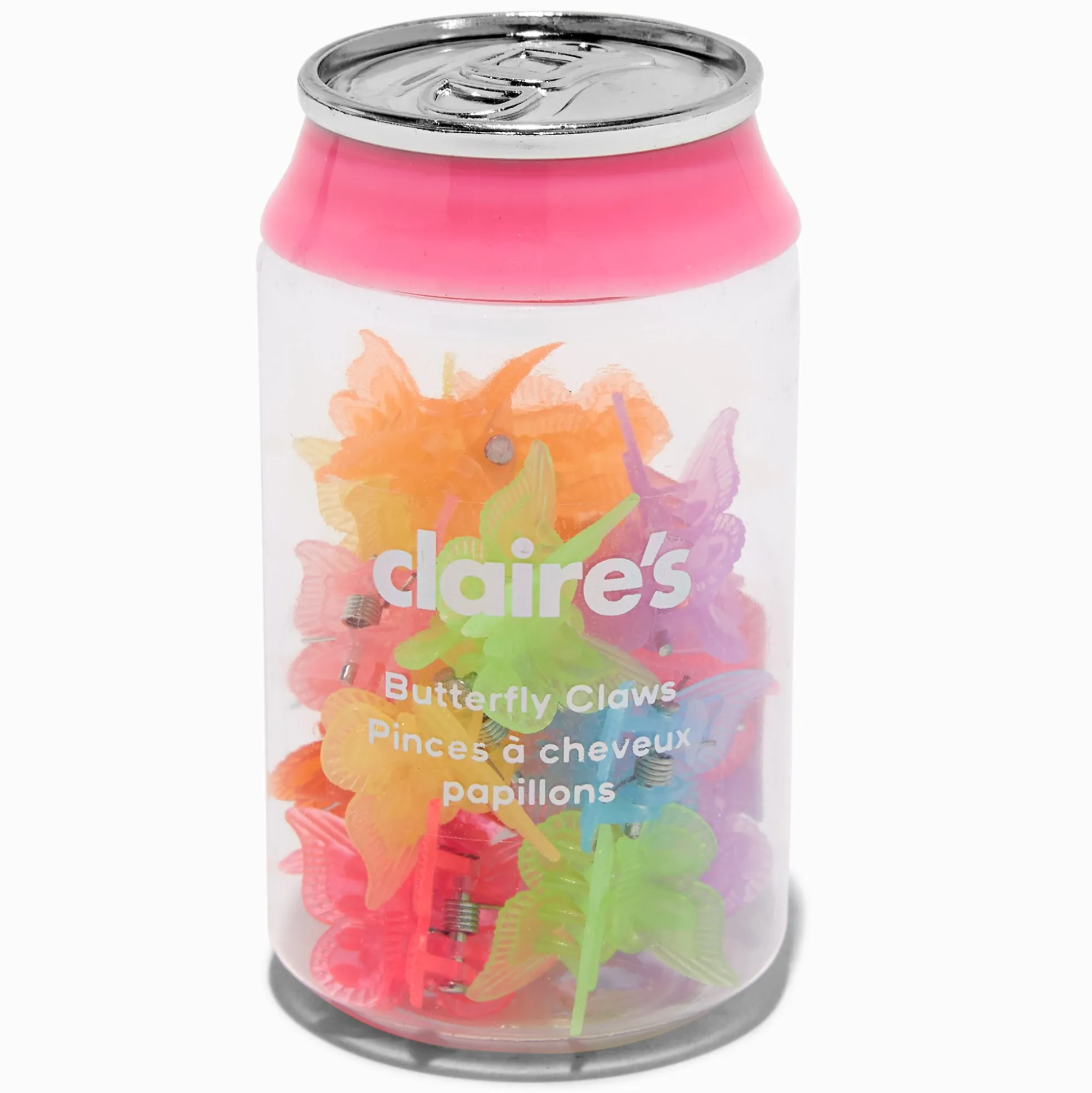 Claws instead of soda. This set comes with rainbow mini hair claws, stored inside an adorable soda can carrying case.