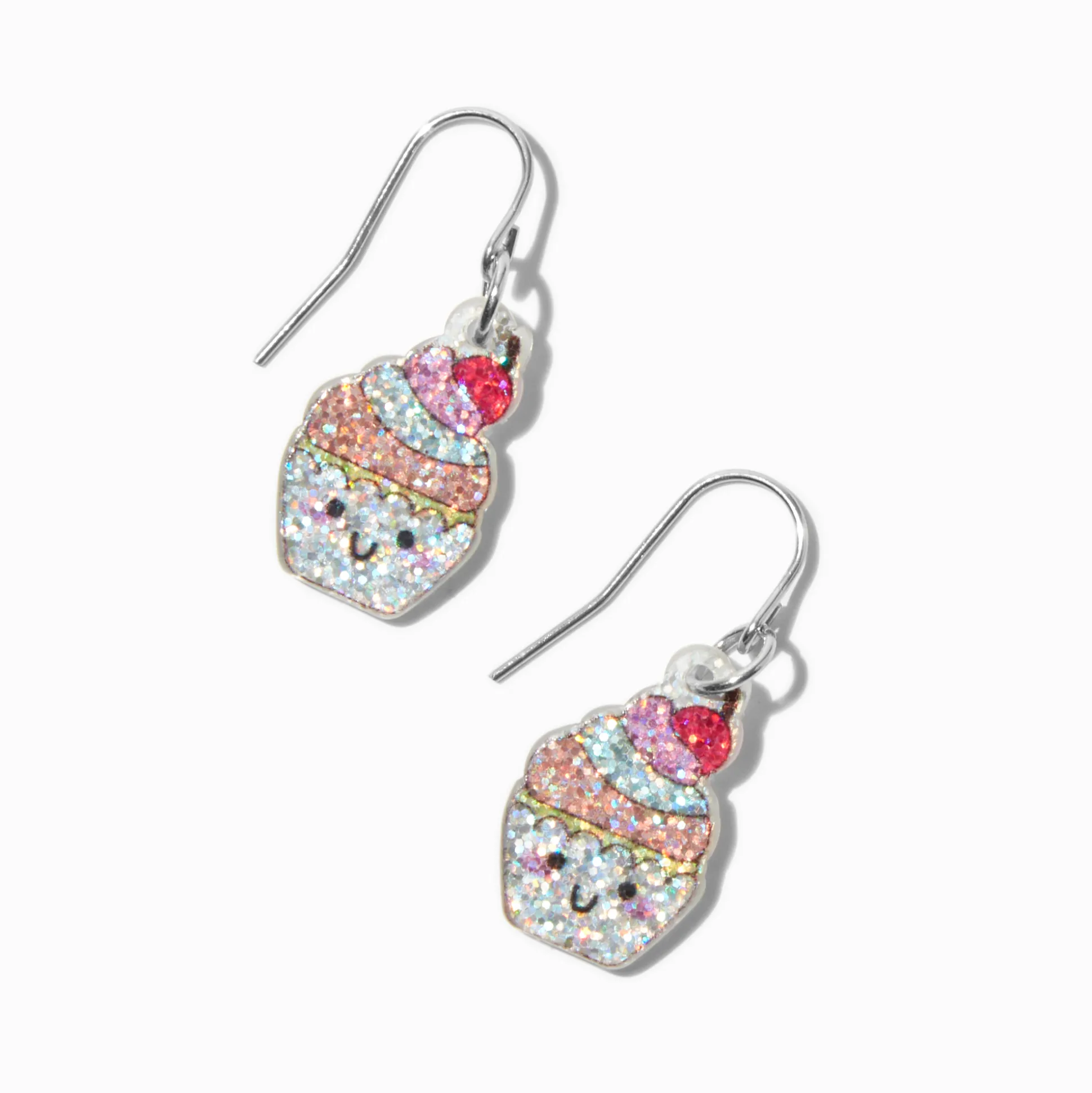 Give your ears a sweet treat with these adorable drop earrings. Each one has a sparkly cupcake design.