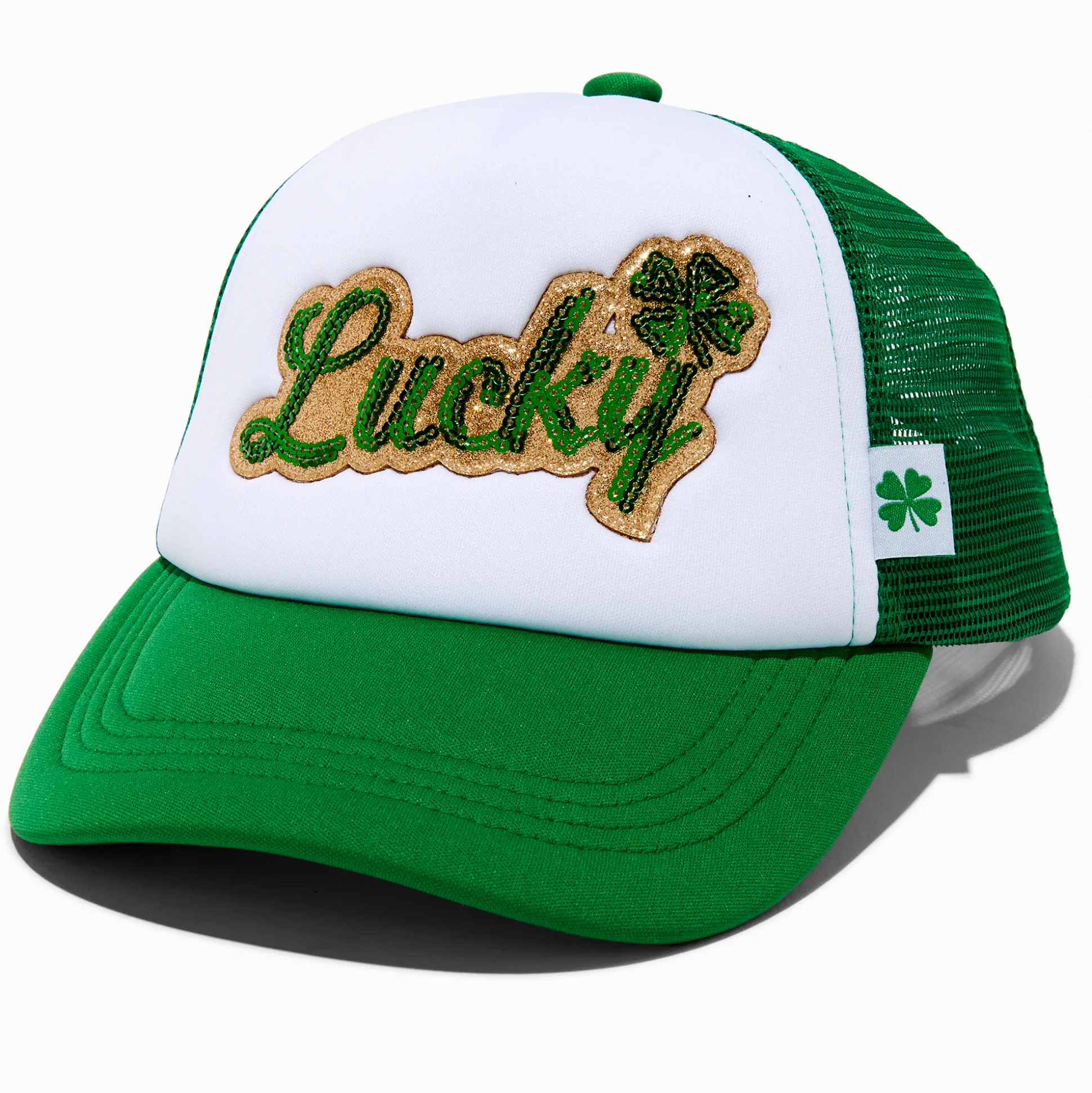 Add some luck to your St. Patrick’s Day look with this sequin hat. This trucker-style hat adds fun to your St. Paddy celebration. It has a mesh back to help keep your head cool, and a strap that adjusts easily for comfort.
