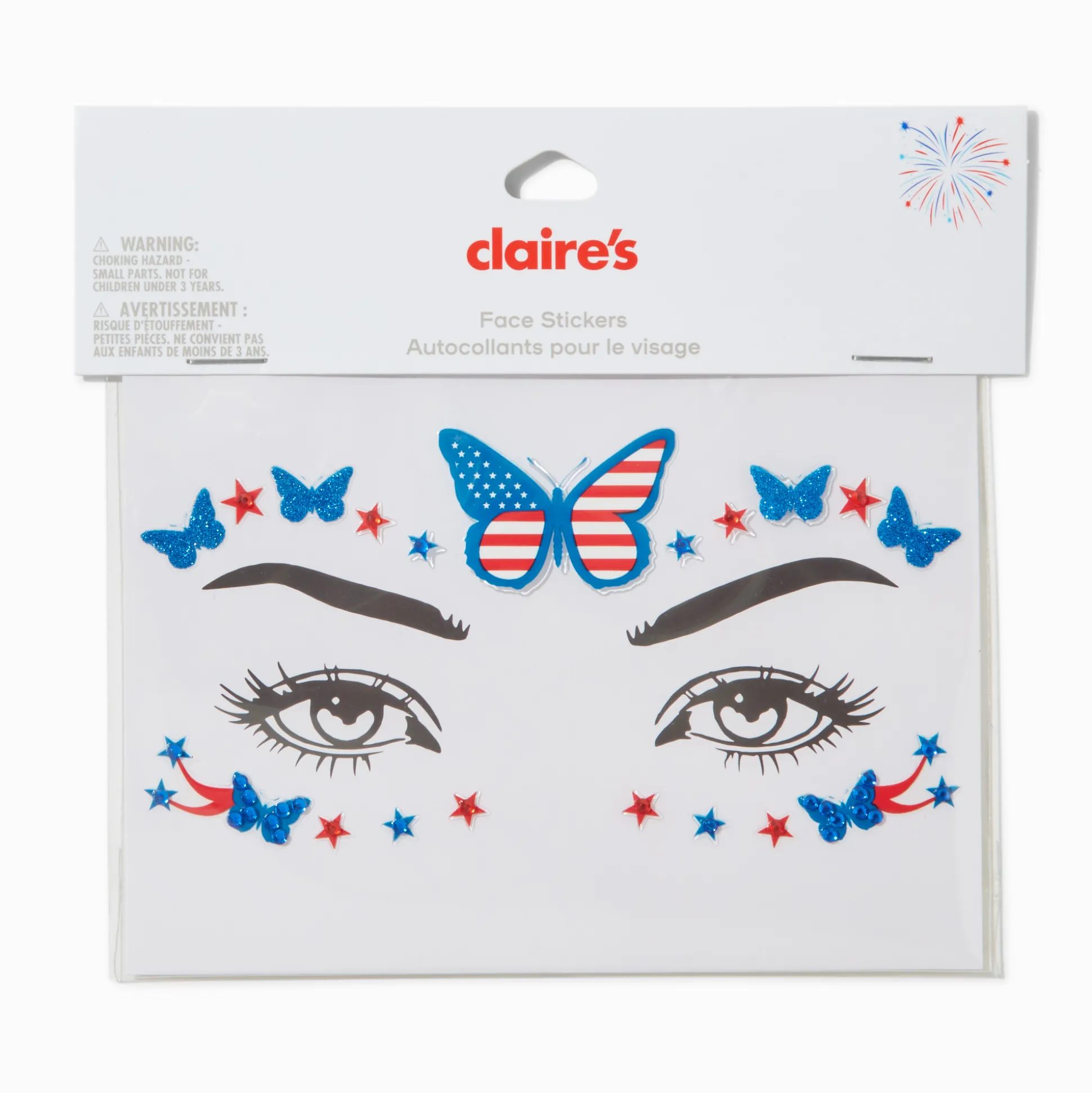 Stars & Stripes Butterfly Gemstones Face Stickers