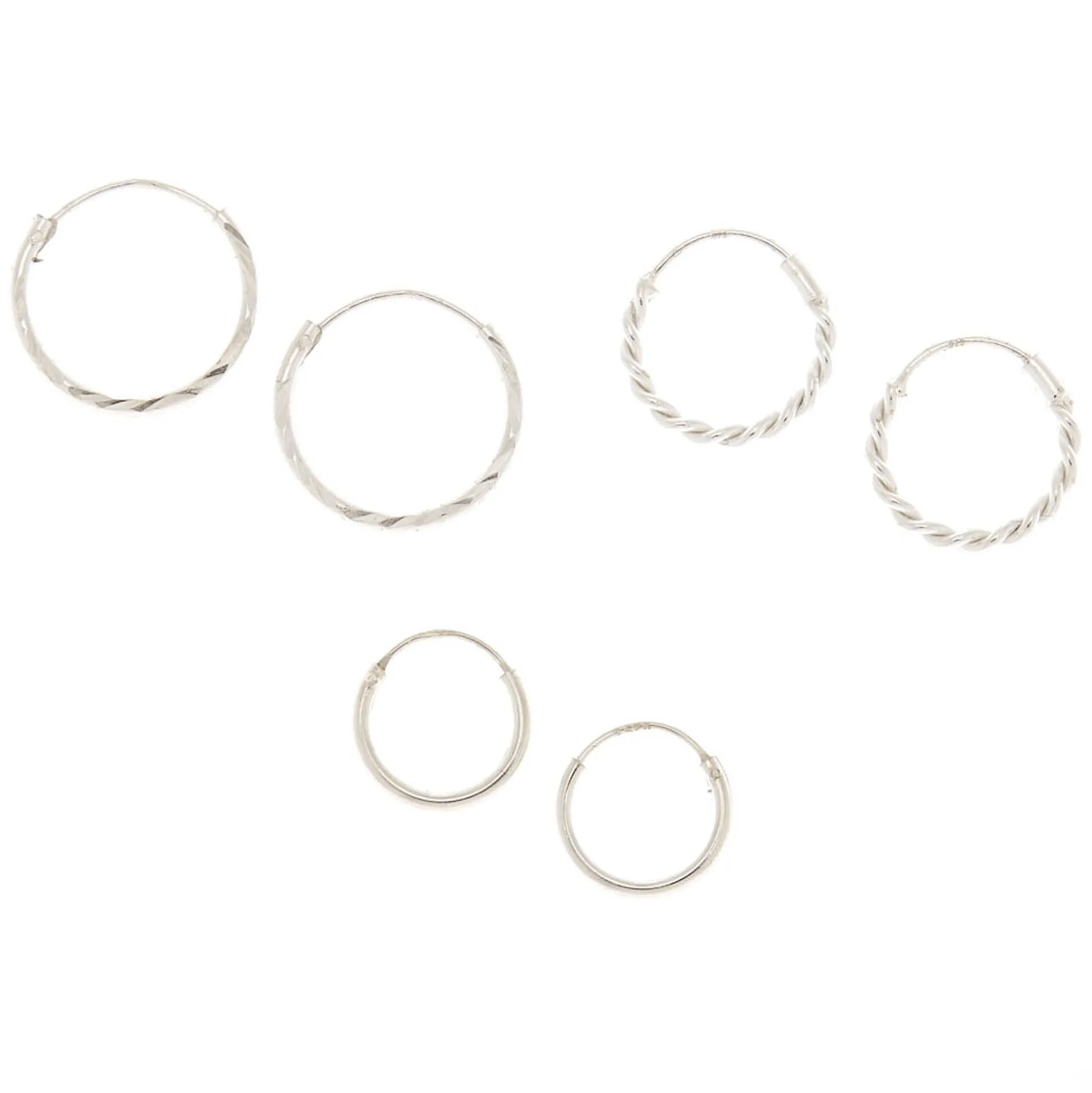 Sterling silver small hoop earring assortment – plain, twisted and filagree. Classic chic accents to fit your every mood!