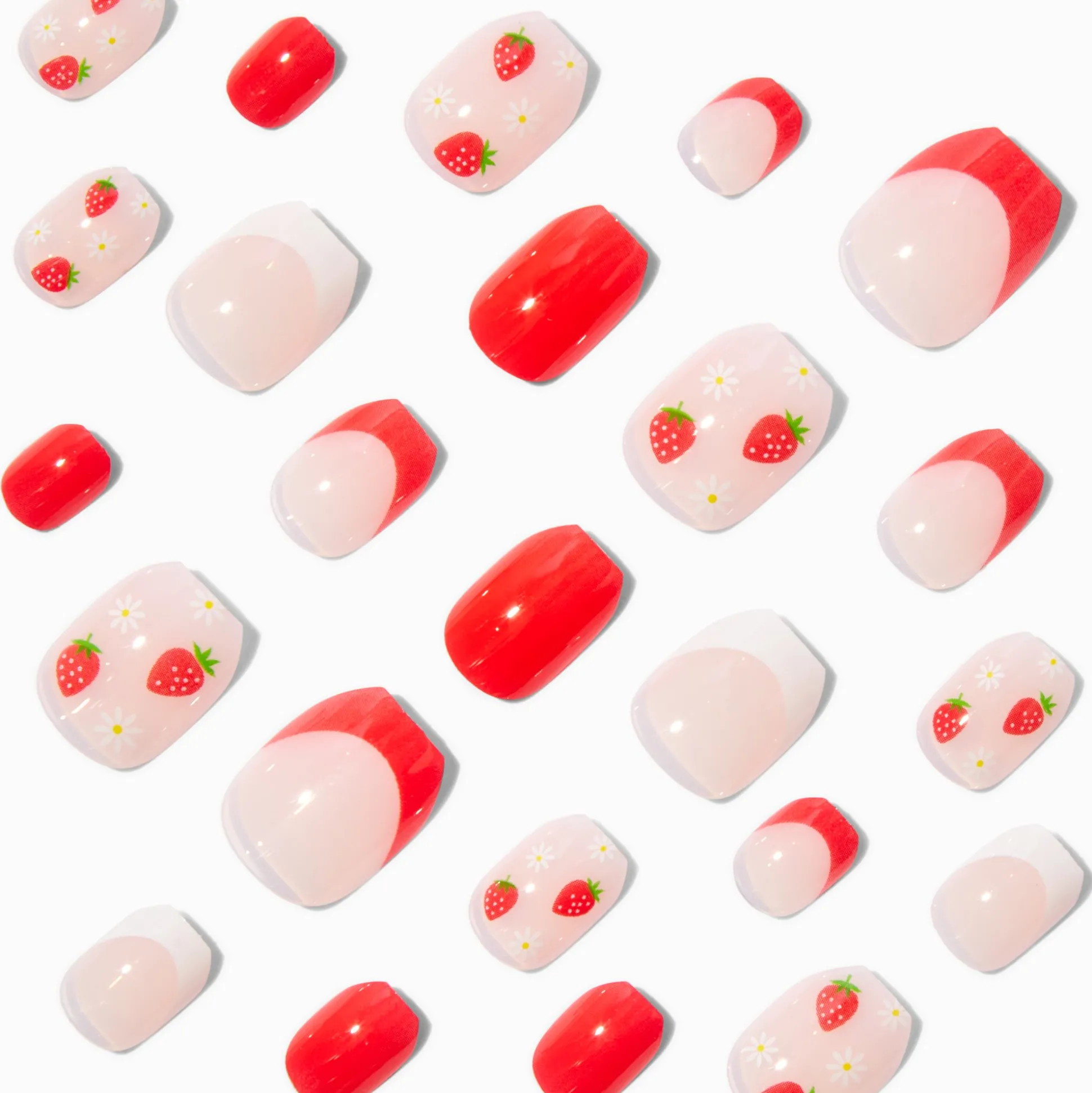 Feel oh so sweet with this on-trend set of faux nails. Coffin-shaped nail set features a juicy design with French tip details. Nails are easy to apply, just press on and go!