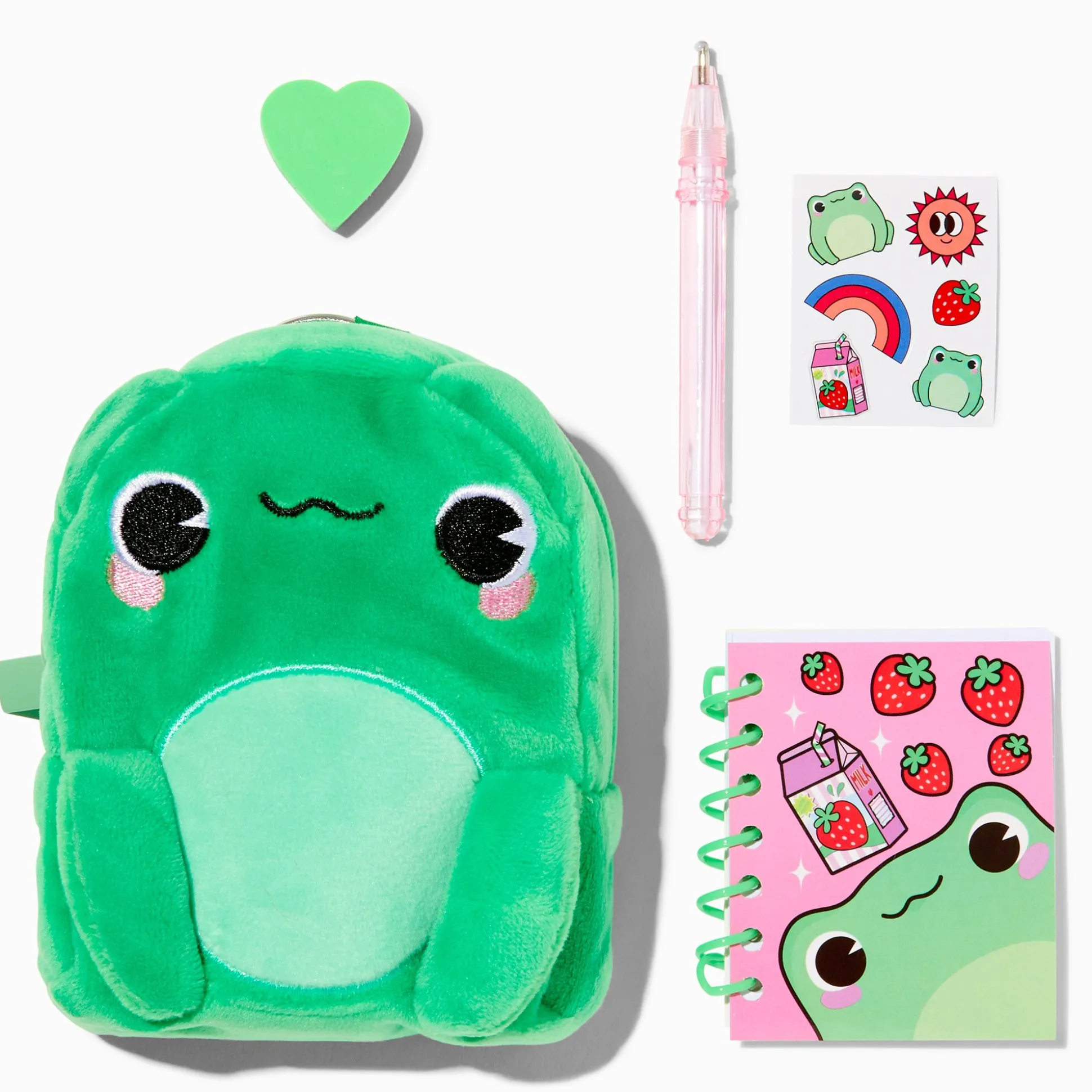 This froggy stationery set is perfect for school! Everything you need, such as: a pen, eraser, stickers, notebook, and a mini keychain backpack, will have you as the talk of the classroom. With matching supplies, you can be stylish out of school and IN school.