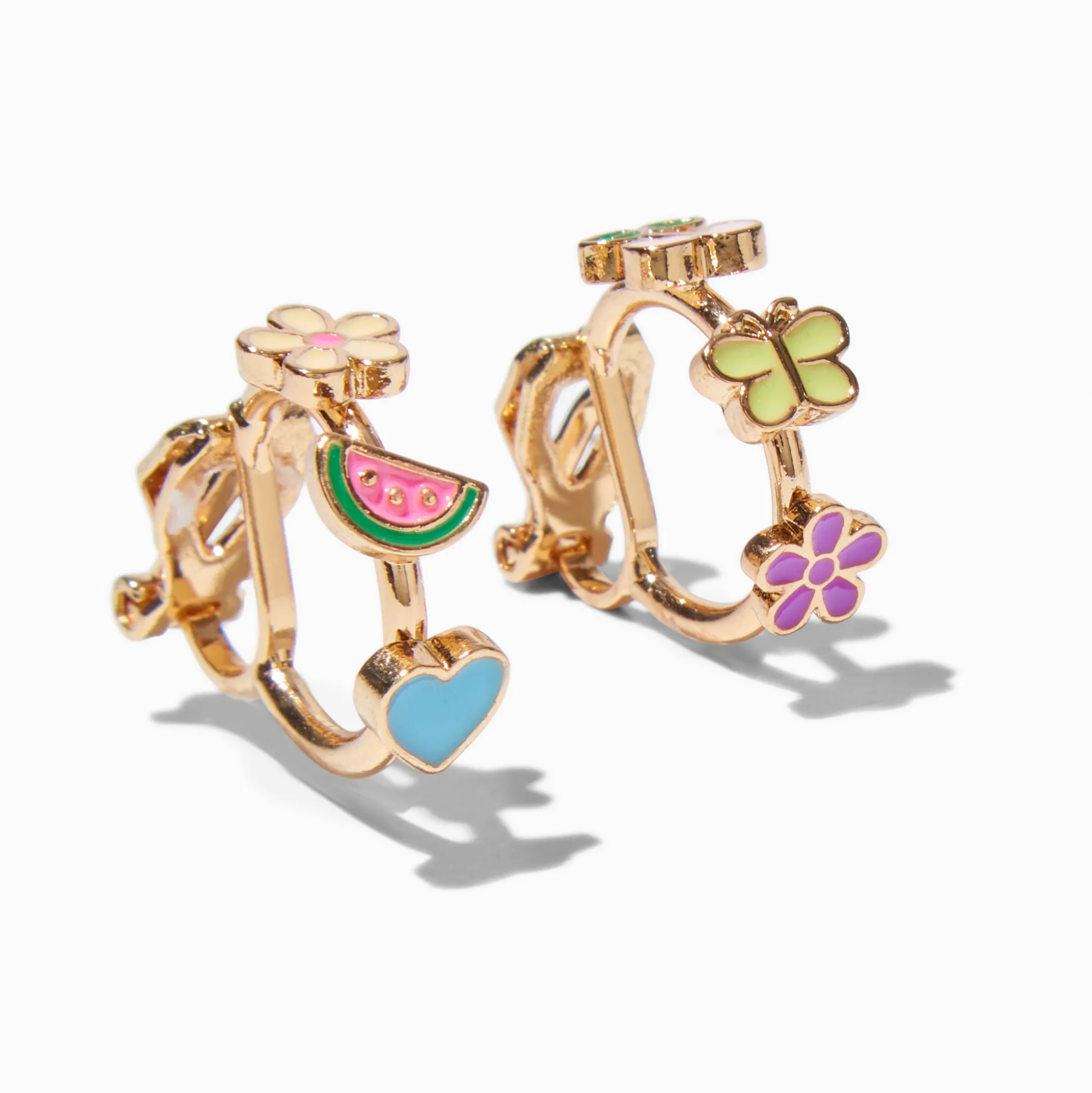 Decorate your ears for summer with these hoop earrings. The gold-tone designs have watermelon, hearts, flowers, and more. Plus, they’re clip-on, so no piercing is required!