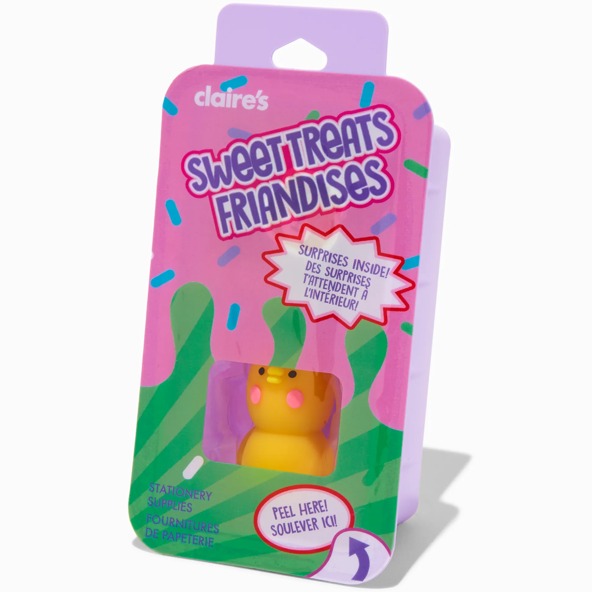 Peel off the lid of this mini bento box and discover adorable stationery supplies. Inside includes a pencil sharpener, an eraser, and a sticker sheet.