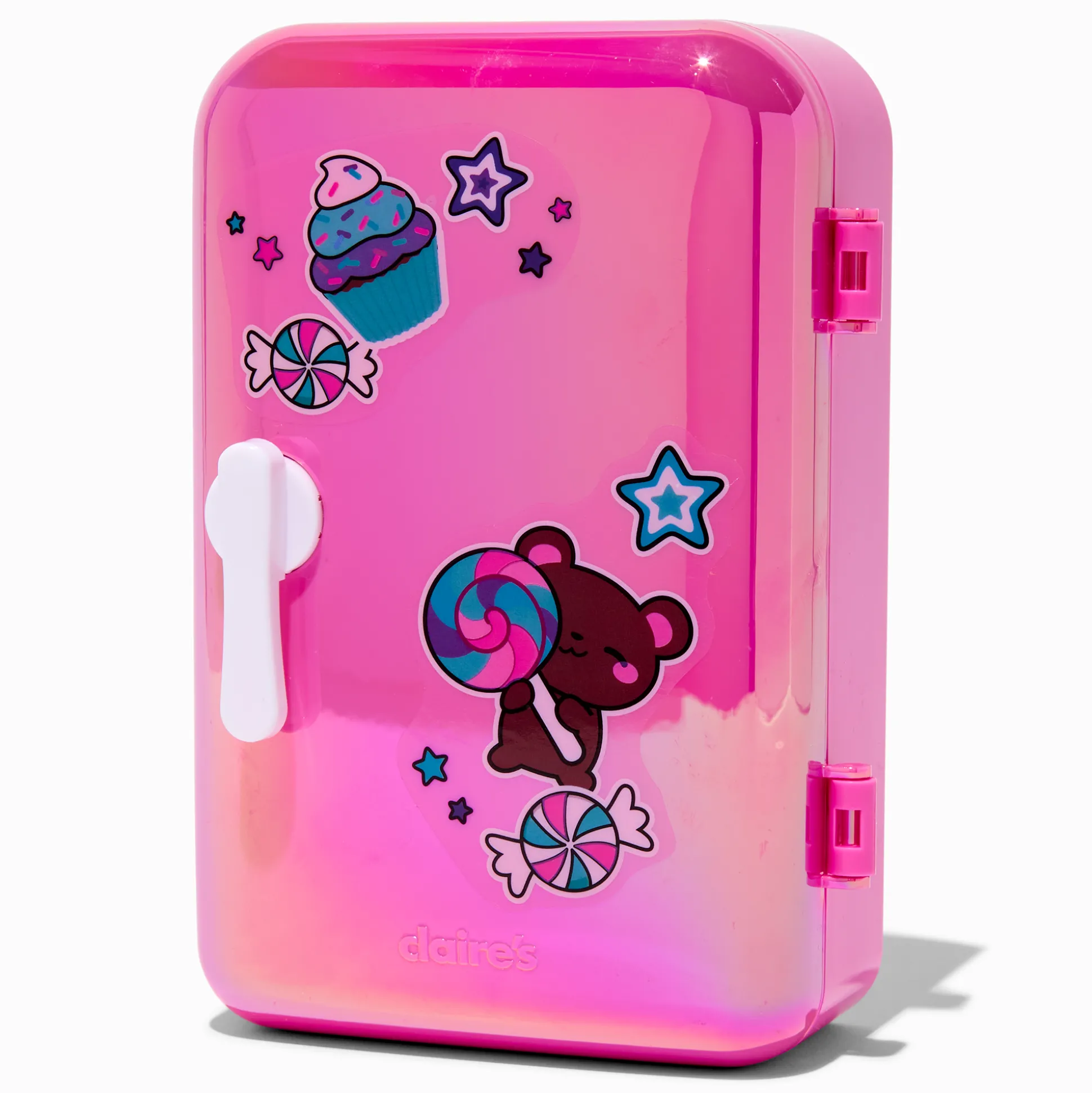Have delicious fun putting on your lip balm with this sweet set! The set includes 4 different flavors of lip balm that come in soda bottles all inside a handy fridge-style packaging.