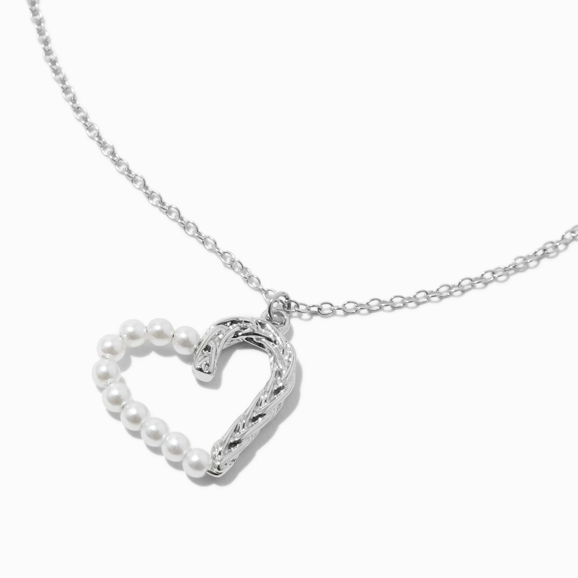 Create a look you’ll love with this pendant necklace. The silver-tone chain has a textured and faux pearl-embellished heart pendant.