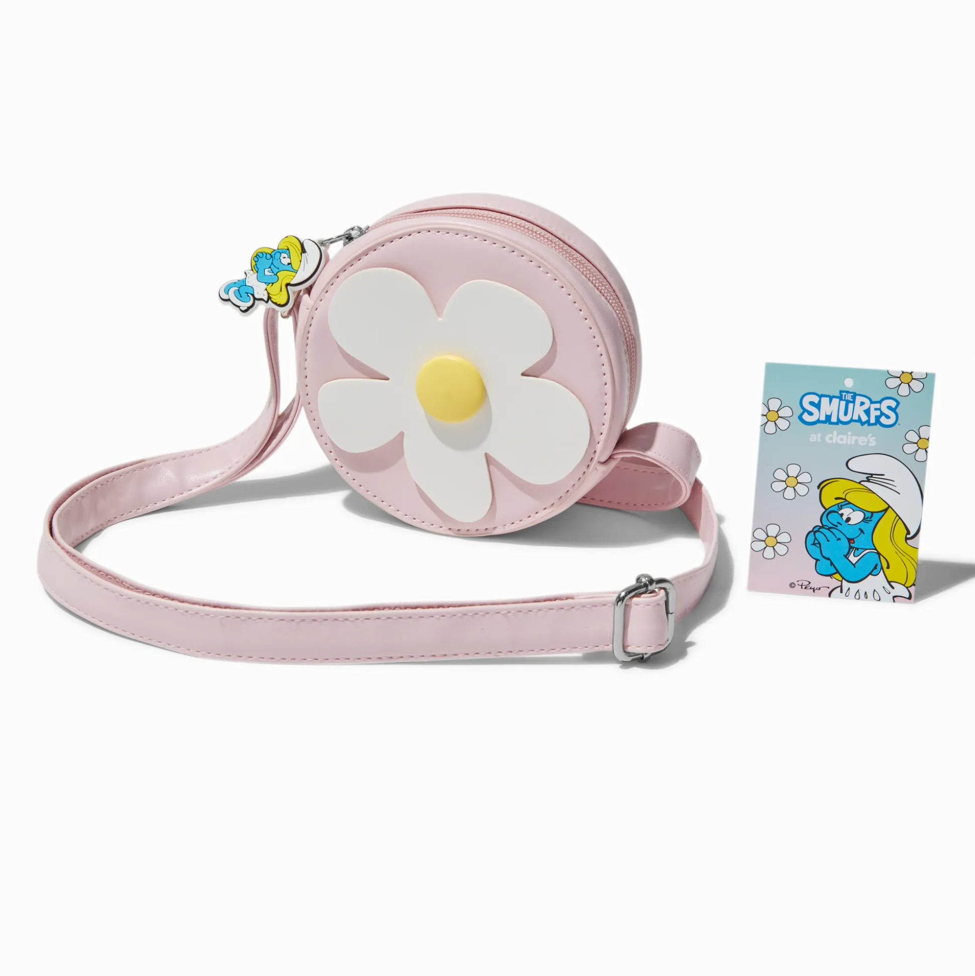 This iconic bag features a daisy design that includes a Smurfette keychain attached. The spacious zippered compartment will hold all your belongings with on-the-go convenience.