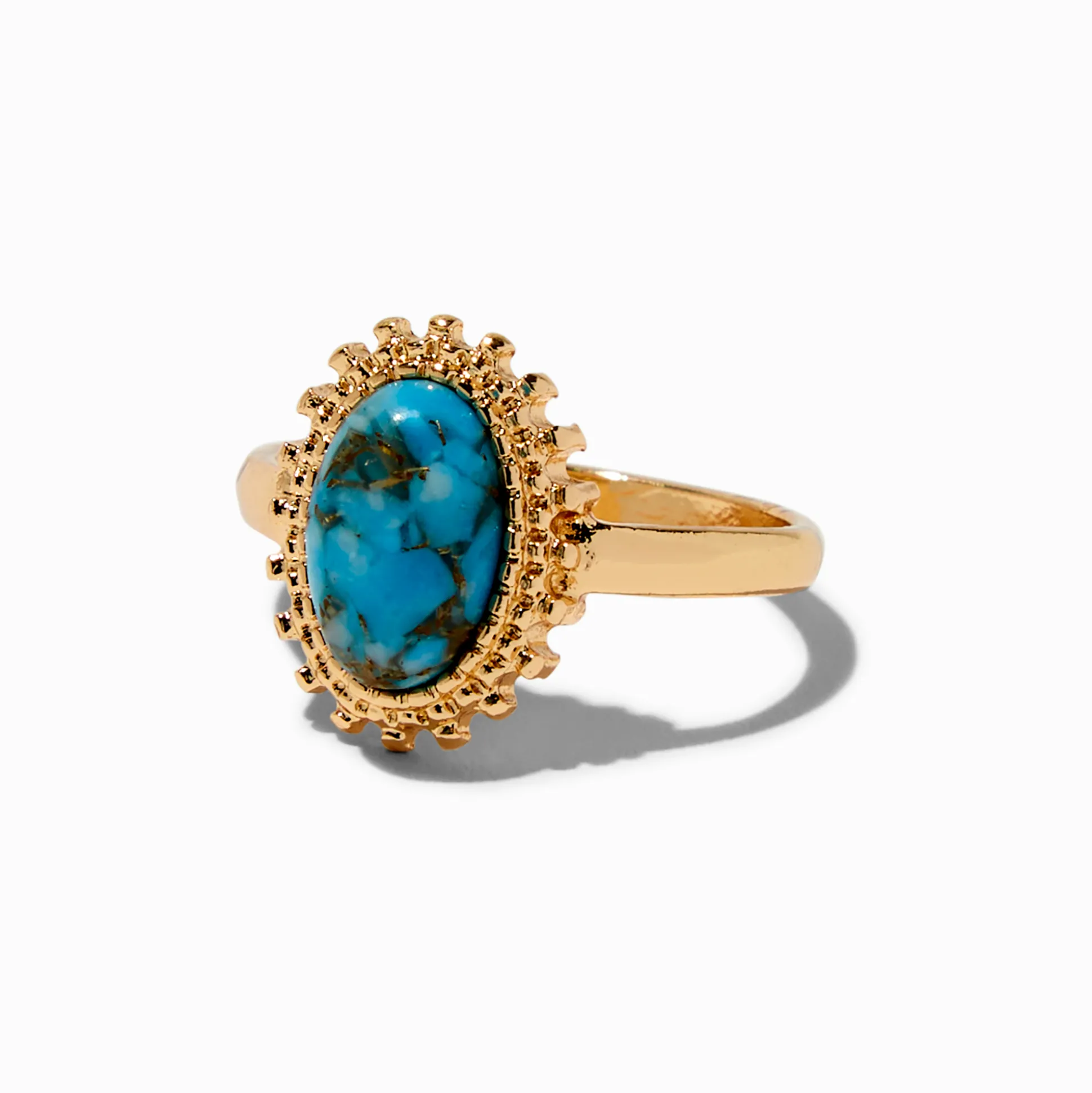 Add to your turquoise-inspired vibe with this beauty. The gold-tone design has a faux turquoise crackle oval.