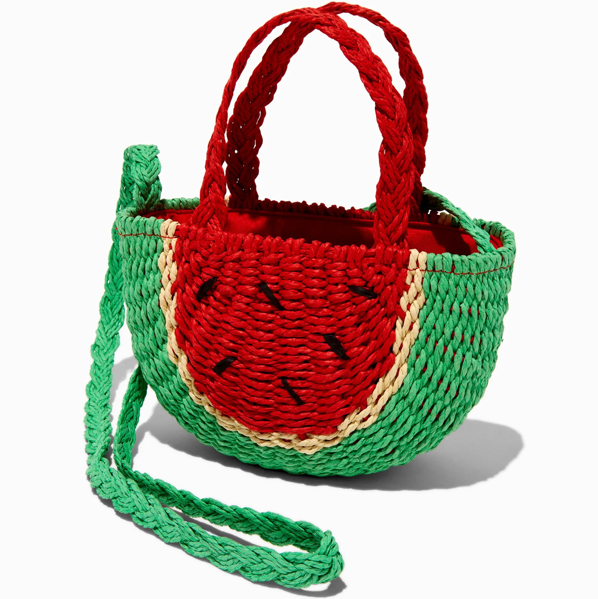 Fashion meets function with this summer-ready bag. Inspired by a juicy watermelon slice, you choose whether to wear it crossbody style or to carry it by the woven handle! The shoulder strap adjusts easily to fit. There’s room inside for the small essentials you’ll need for a day of shopping or a picnic.