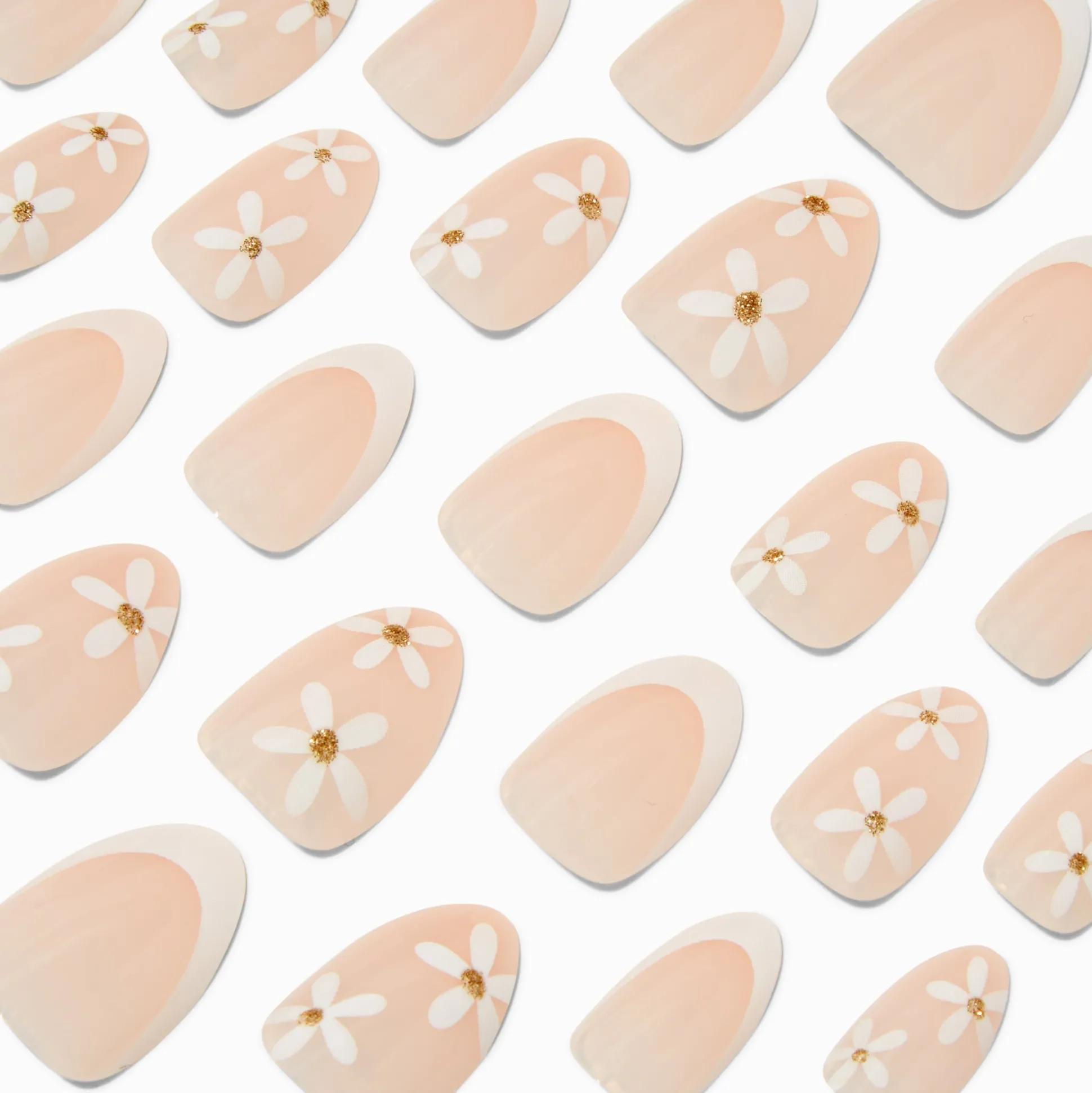 With an improved fit and up to a 7-day wear, these almond vegan faux nails are on-trend faves. They come in 12 different sizes, so finding the perfect size nail is a breeze. With an almond shape, these faux nails have a daisy design.
