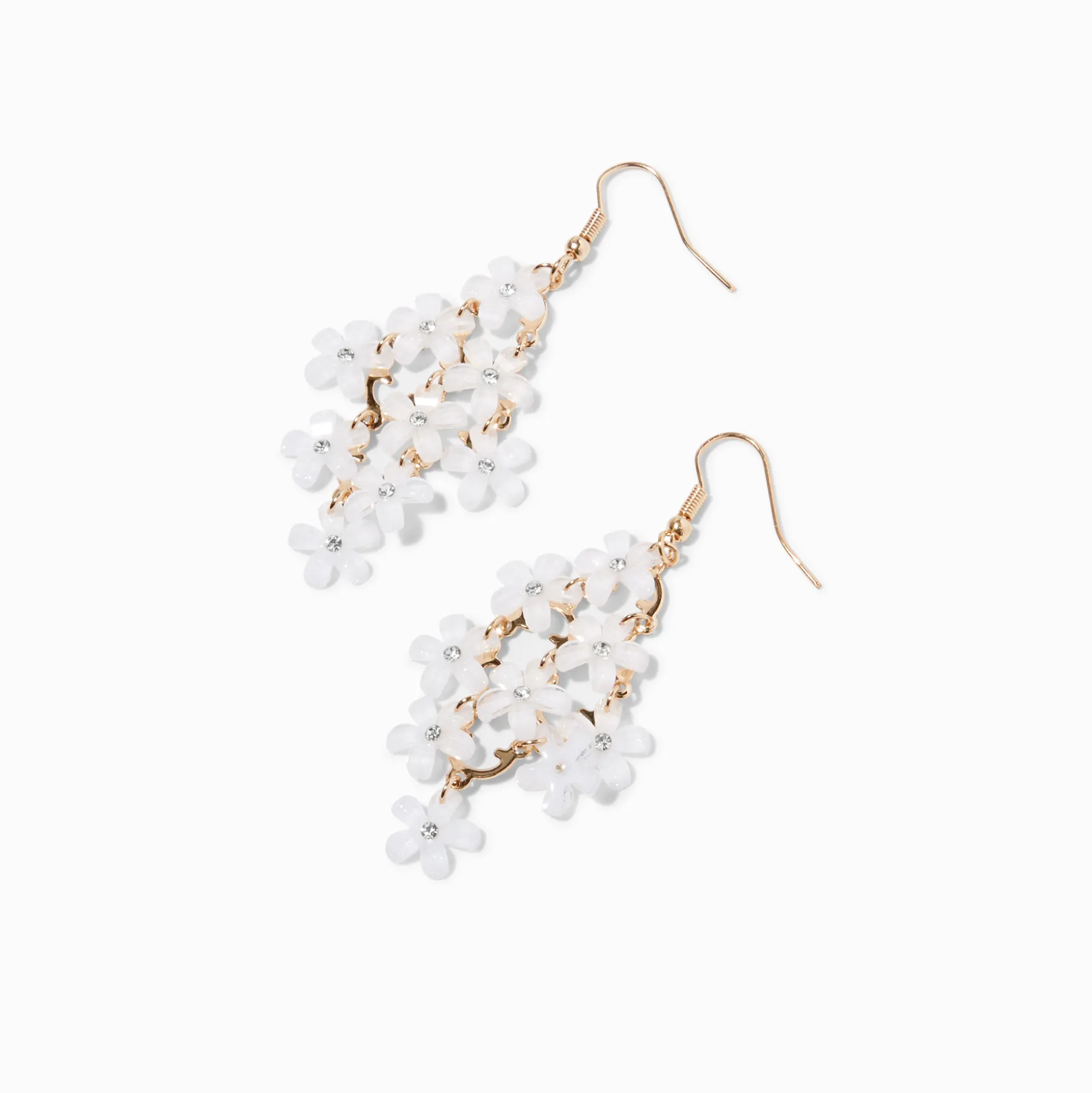 Wear these earrings with all your favorite Spring time outfits in your closet and look fabulous! These drop earrings feature a chandelier design with white flowers on each earring to match perfectly with all your looks.
