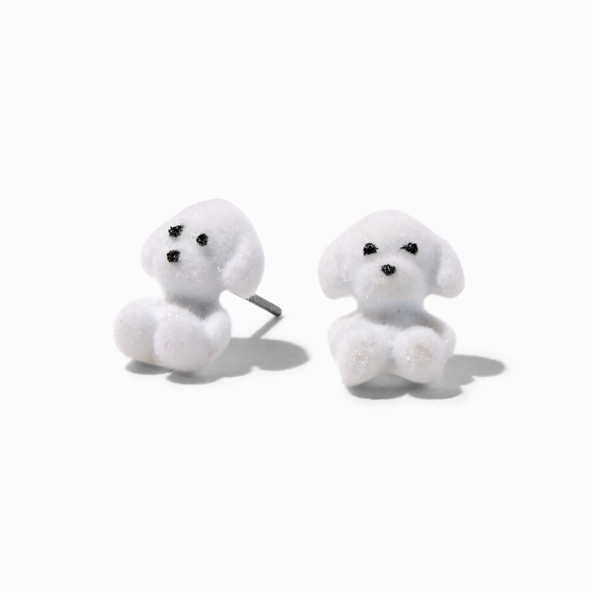 These puppy earrings are cute overload. These earrings have a fuzzy texture to touch, and will add eclectic charm to any look.