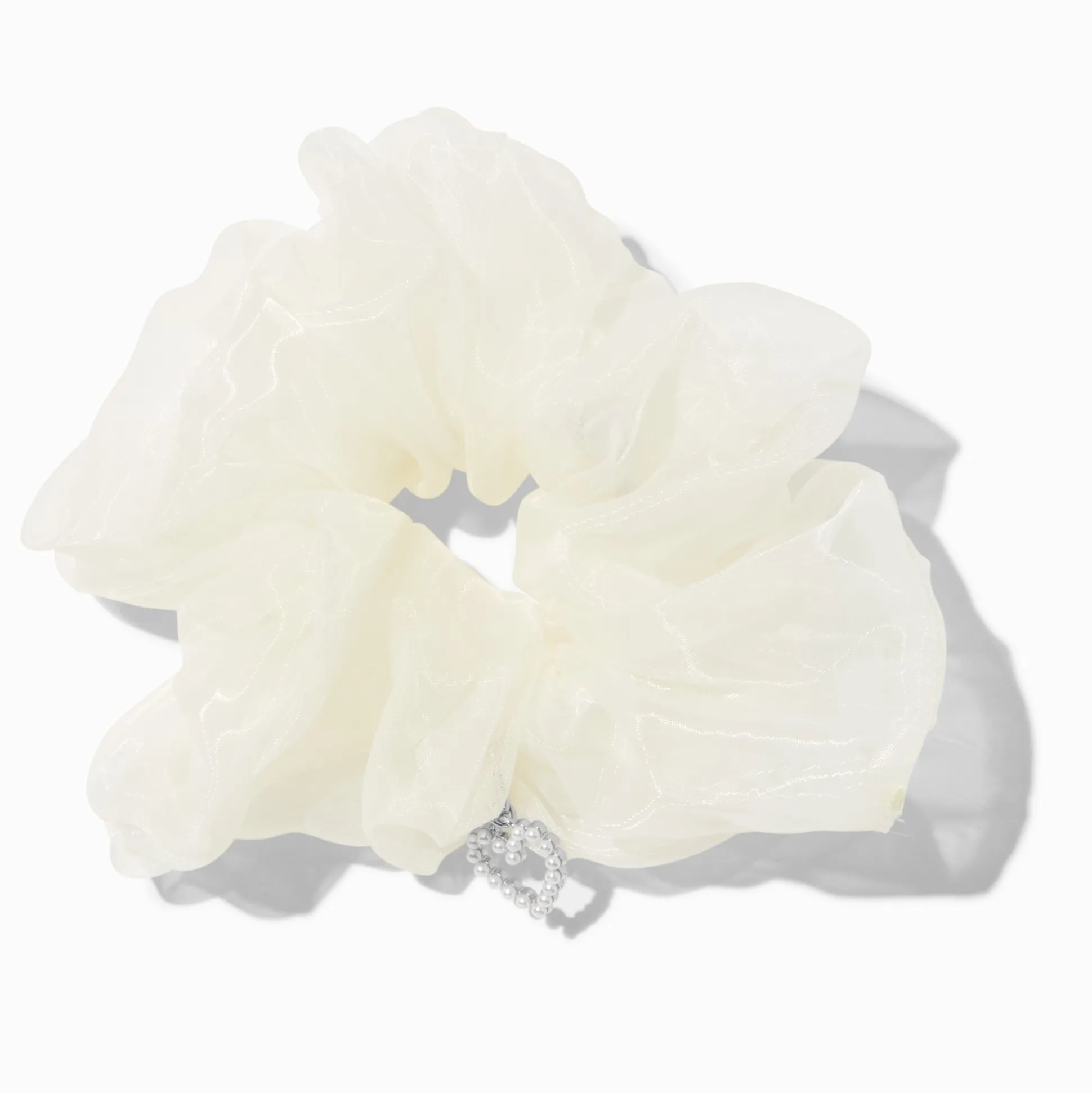 Decorate your ponytail with rich organza style and a faux pearl-covered heart charm. The elastic design helps keep your hair secure.