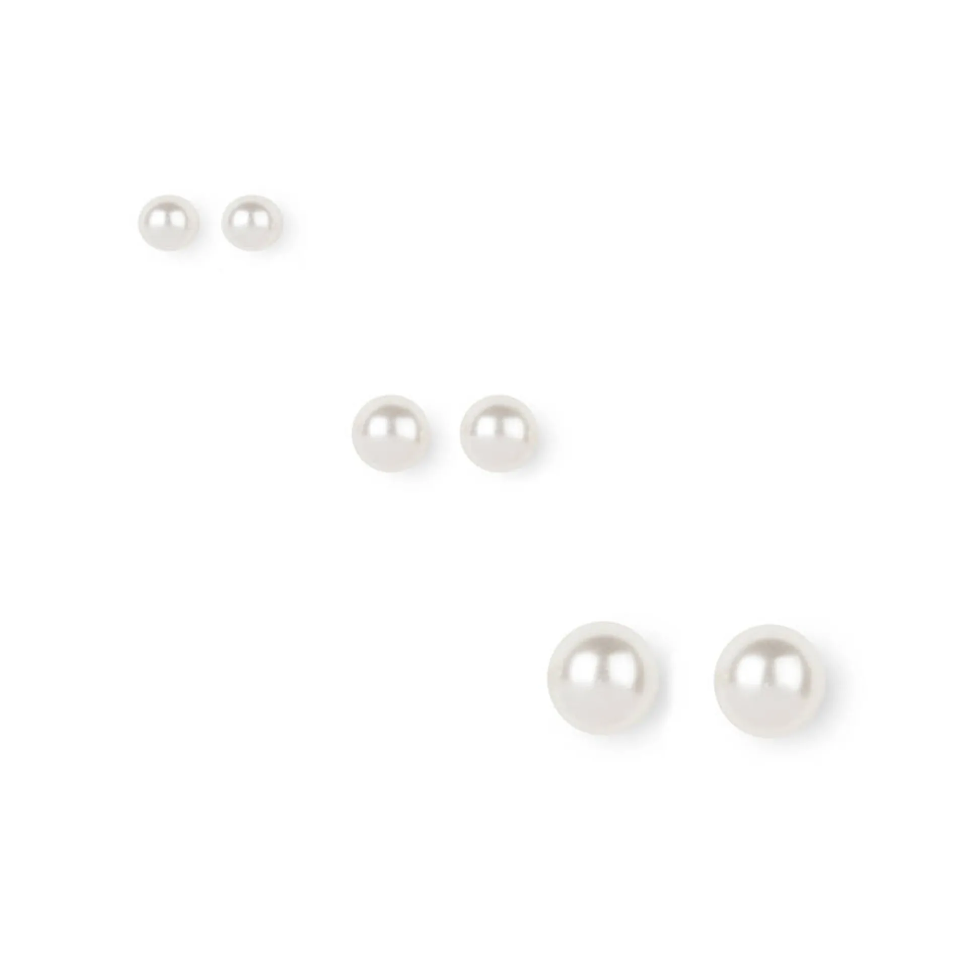 With 3 sizes of classic pearl stud earrings, this set has you covered. Includes: 6, 7 and 8mm faux pearl studs.