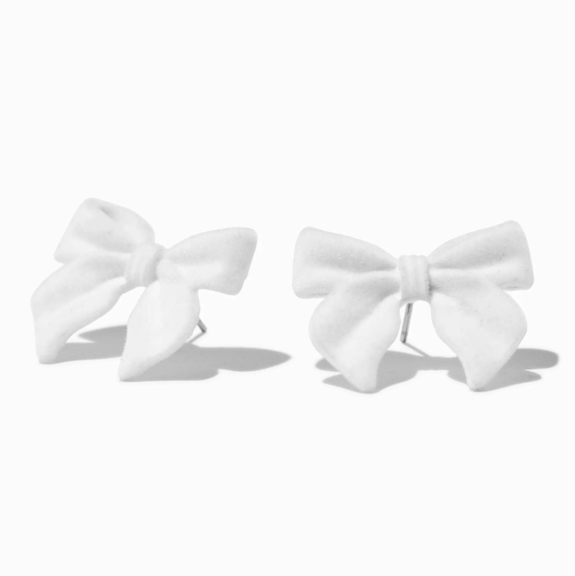 You can never go wrong when you decorate your ears with a pretty little bow. These stud earrings have a white velvety finish and an easy post back.