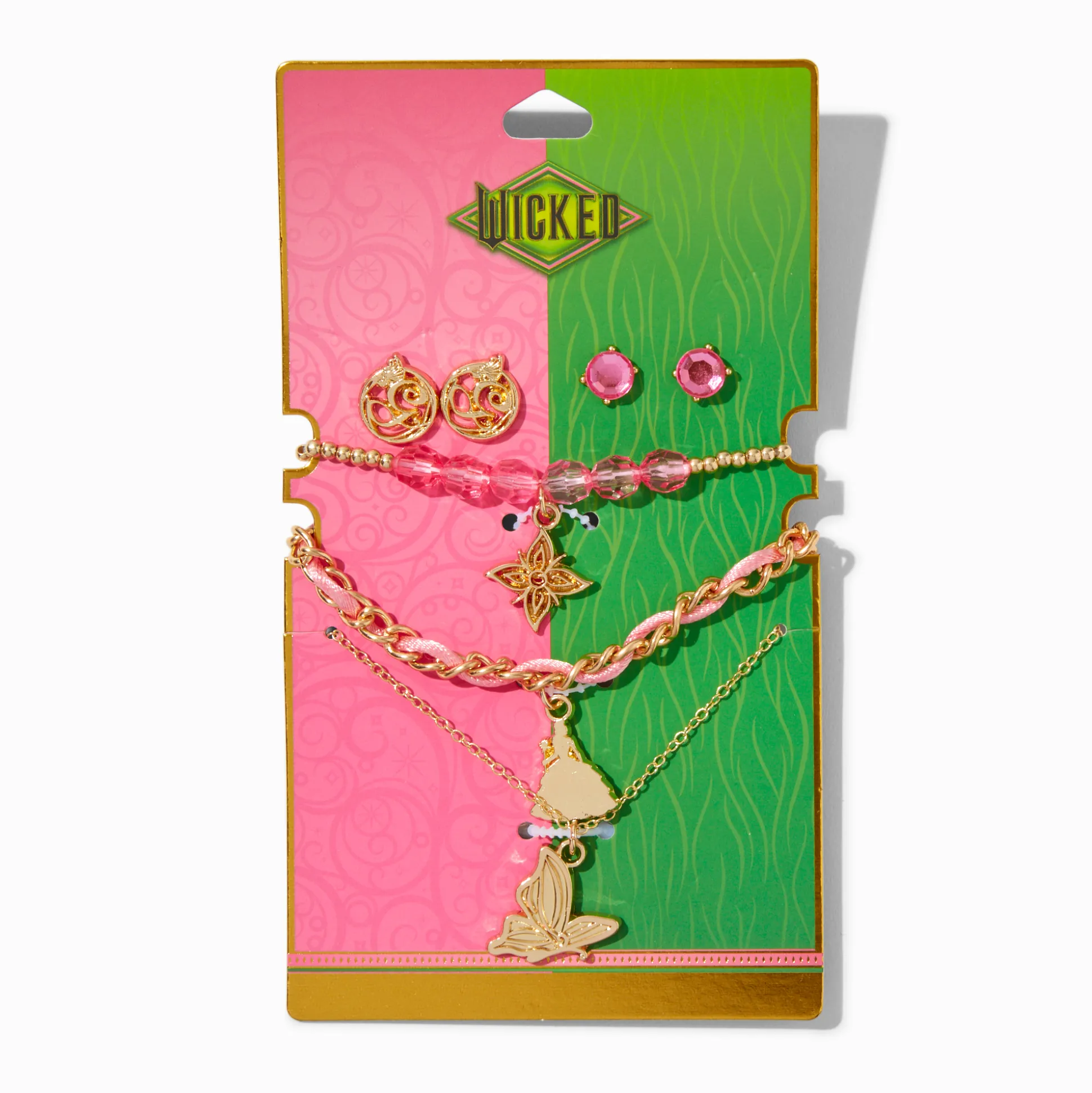Defy gravity with this Wicked™-themed jewelry set! Wear one or all, you’ll love the way the stud earrings, bracelets and necklace channel all things ‘Glinda’.