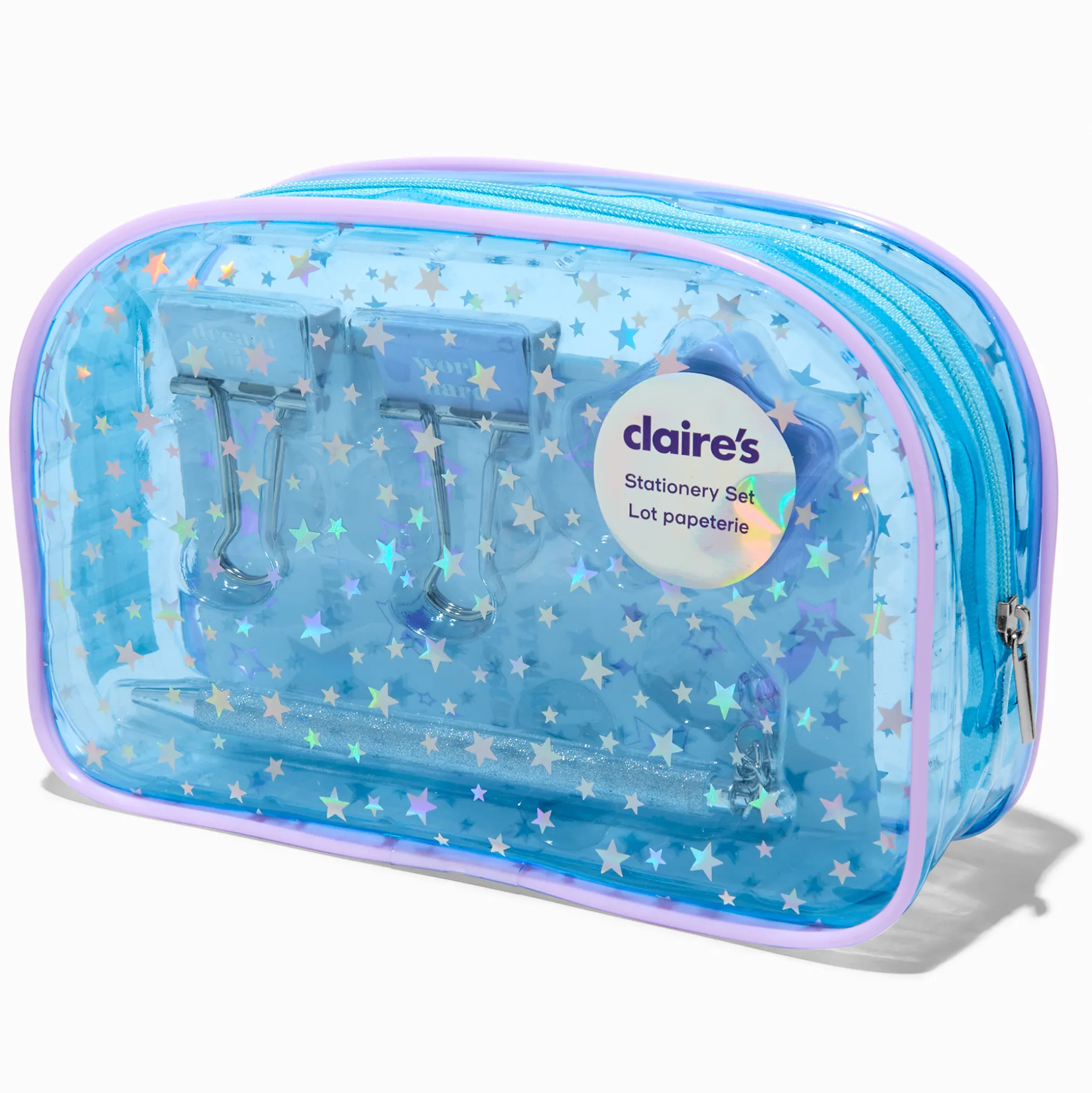 - Included: 1 pen, 1 pencil sharpener, 1 sticker sheet, 1 notebook, 2 binder clips, zipper pouch
