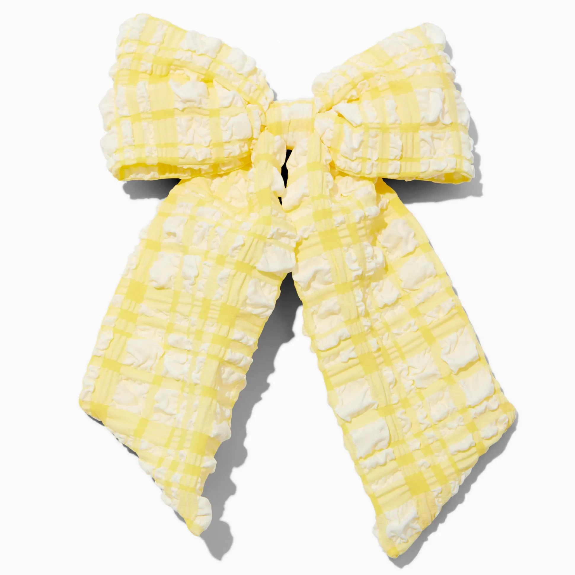 Be the most you in this gingham hair bow. It has a barrette-style clip on the back for securing anywhere in your hairdo.
