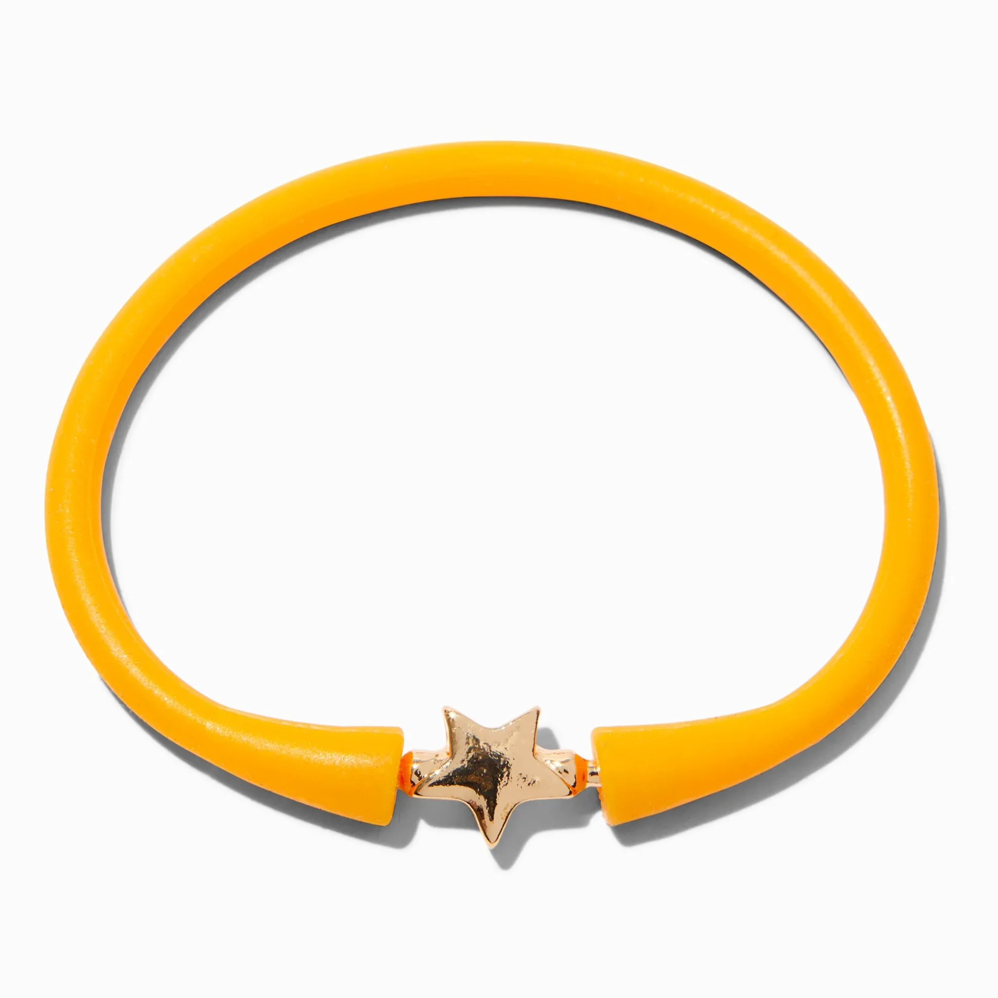 Layer up on lovely with this silicone bracelet on your wrist. The bangle-style bracelet has durable silicone construction that’s finished with a gold-tone star.