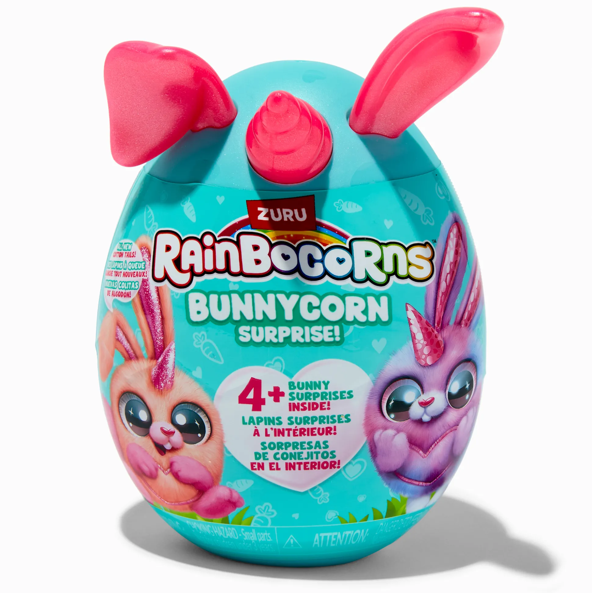 Unwrap, peel, and reveal Bunnycorn collectibles with this Rainbocorns™ bling bag! What will you unbox? There are 7 bunnycorns with bows to adopt, with accessories & glowing eyes! Collect them all to create your own mini pound!
